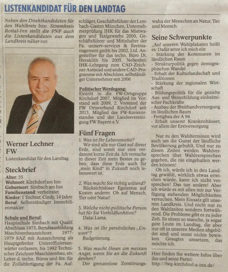 - Mitglied der Landesvereinigung FW Bayern e.V.